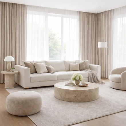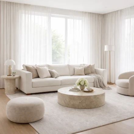 Soft, airy fabrics that filter daylight beautifully while maintaining elegance.